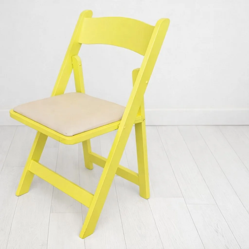 כסא עץ צהוב מרופד