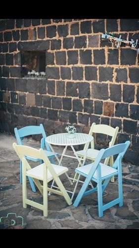 שולחן פריזאי בשילוב כסאות צבעוניים
