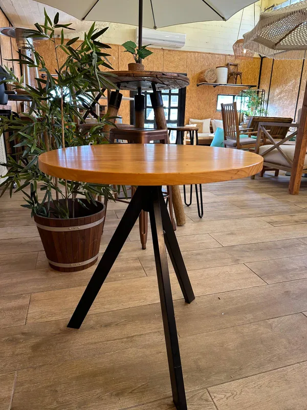 שולחן בית קפה פלטת עץ רגל שחורה 3 זרועות קוטר 0.70